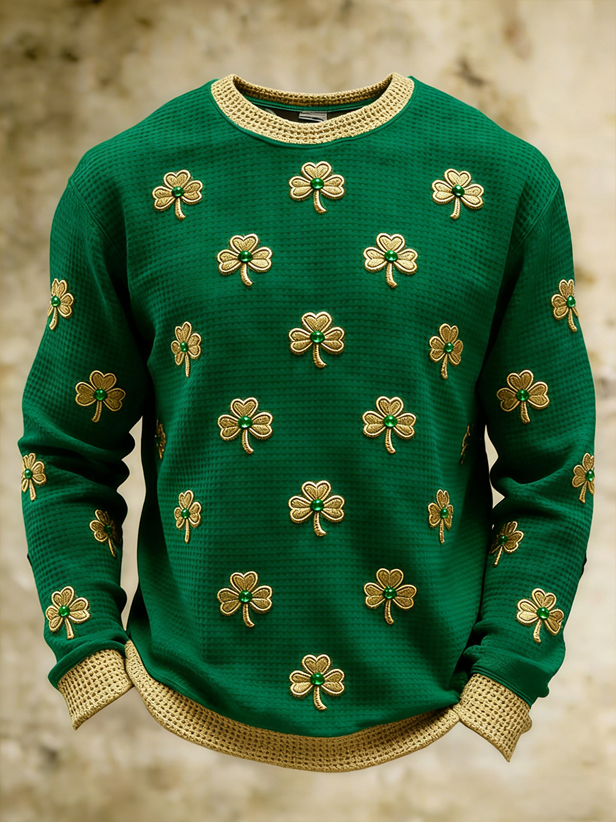 Men's St Patrick's Day Shamrock Art Waffle Sweatshirt