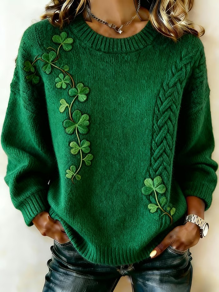 Women's St Patrick's Day Shamrock Print Casual Sweater
