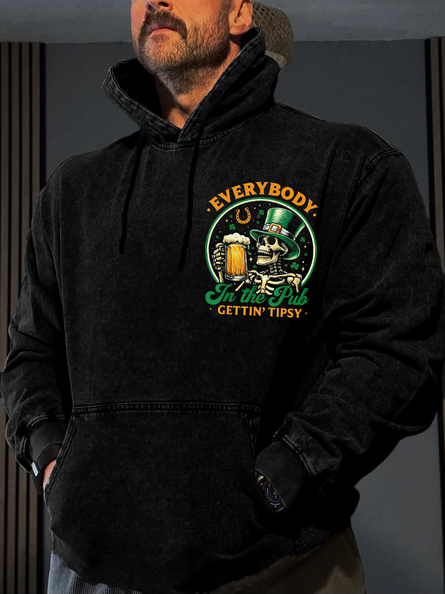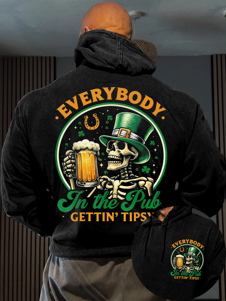 Men's Funny St Patrick's Day Everybody In The Pub Gettin Tipsy Skeleton Print Casual Hoodie